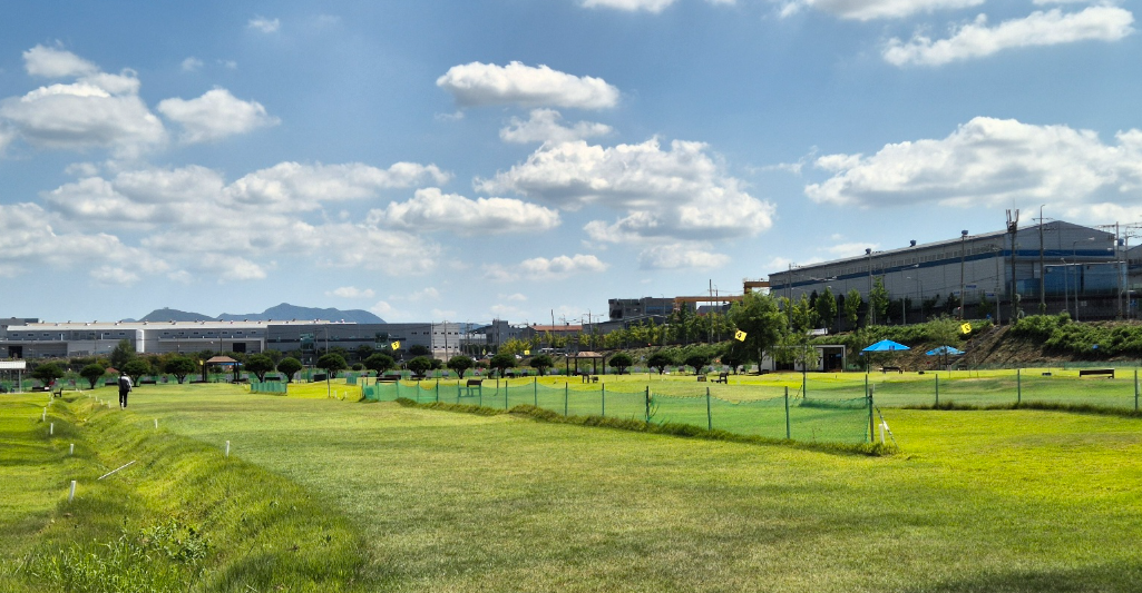 - 남강·산단 일대 생태복원지 위에 만들어져, 시야가 트인 넓은 페어웨이 + 인공적인 느낌이 덜한 자연형 36홀입니다.